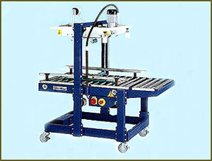 Upper folding cover with auxiliary device to avoid to folding for double sides cover of the carton, so as to make carton sealing quick and carton's size or machine's height adjustable.